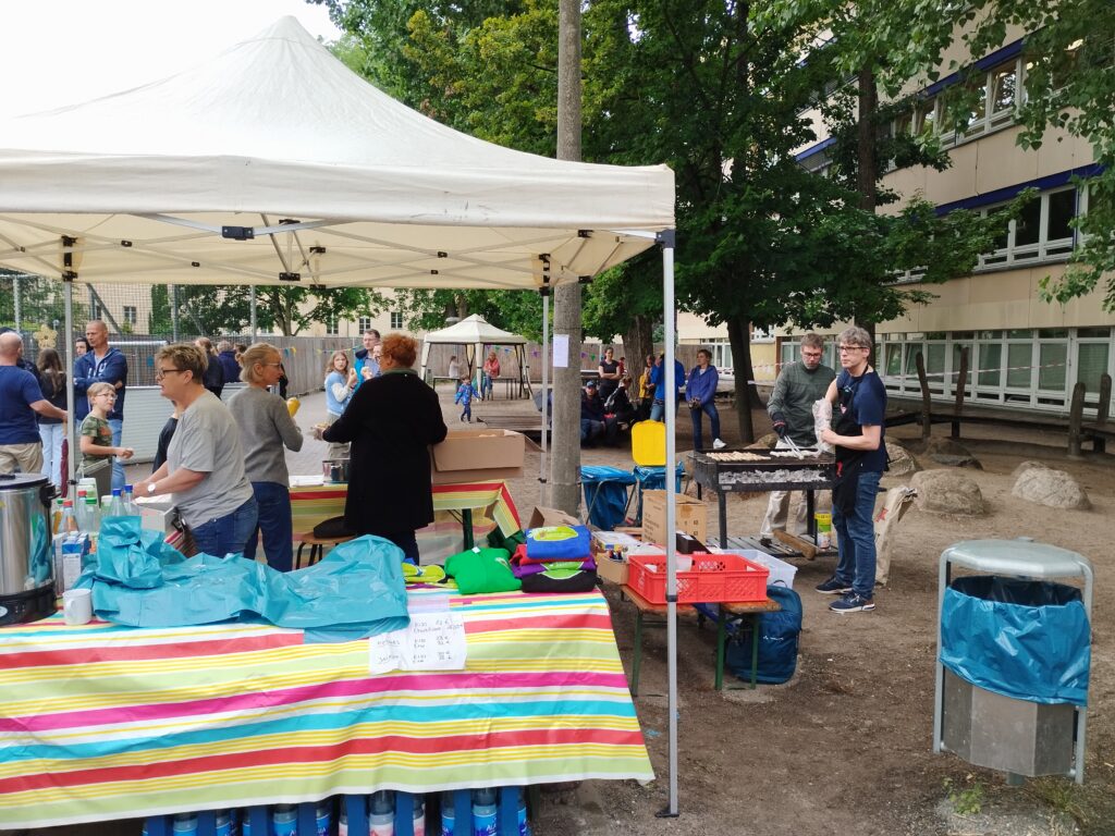 Trotz des Regens kam das Fest bei allen gut an! Danke an alle, die uns geholfen haben Bratwurst, Kaffee und kalte Getränke zu verkaufen. Besonderer Dank an die Lehrer und Erzieher und die Eltern: Janine, Lisa 3c, Sandra 2c, Susanne und Freundin, Annika mit Ehemann (6c), Steffen (5b), Janine (ehemalige 6a) und Mathias. Ein besonderes Dankeschön an die Feuerwehr und Polizei für ihre Teilnahme. Leider konnte die Hüpfburg wegen des Wetters nicht intensiv genutzt werden, aber wir überlegen uns wetterfeste Alternativen für nächstes Jahr. Ideen sind willkommen!
